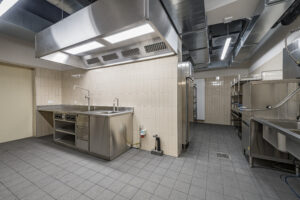 Grosse Gastroküche mit Geschirr für 80-100 Personen